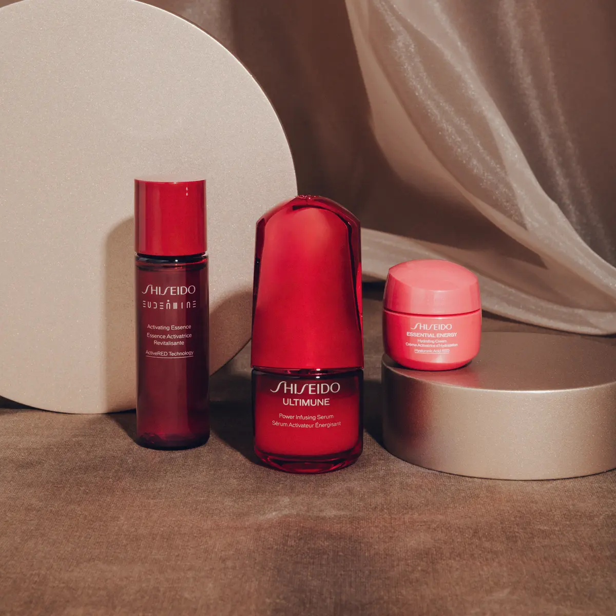 ブランドが誇る“赤の名品”をしっかり使えるミニサイズにして3点セットに。この春リニューアルして話題を呼んだ美容液「アルティミューンTMパワライジング セラム」、シグネチャーアイテム「オイデルミン エッセンスローション」、ツヤと潤いを与えて生き生きとした肌に整える「エッセンシャルイネルジャ ハイドレーティング クリーム」。手に取りやすい価格設定で心置きなく試せるのがうれしい。