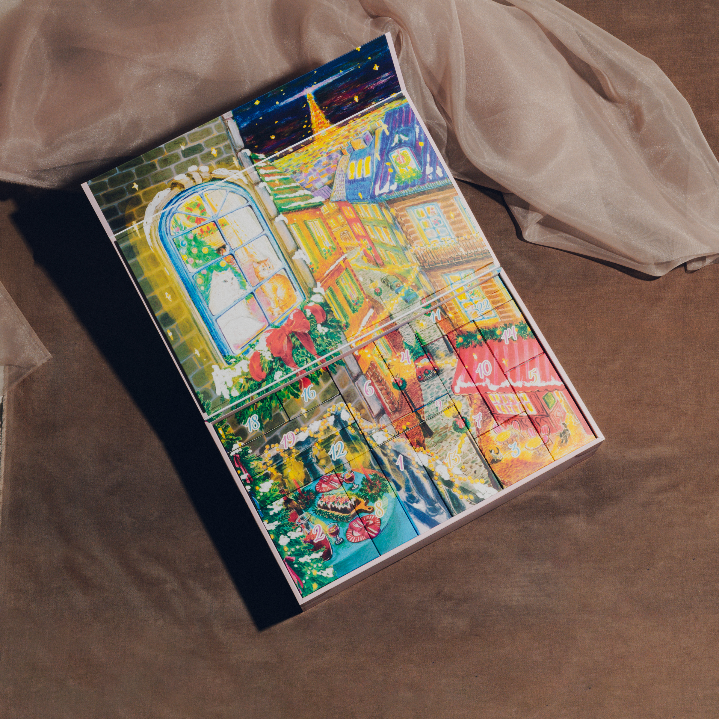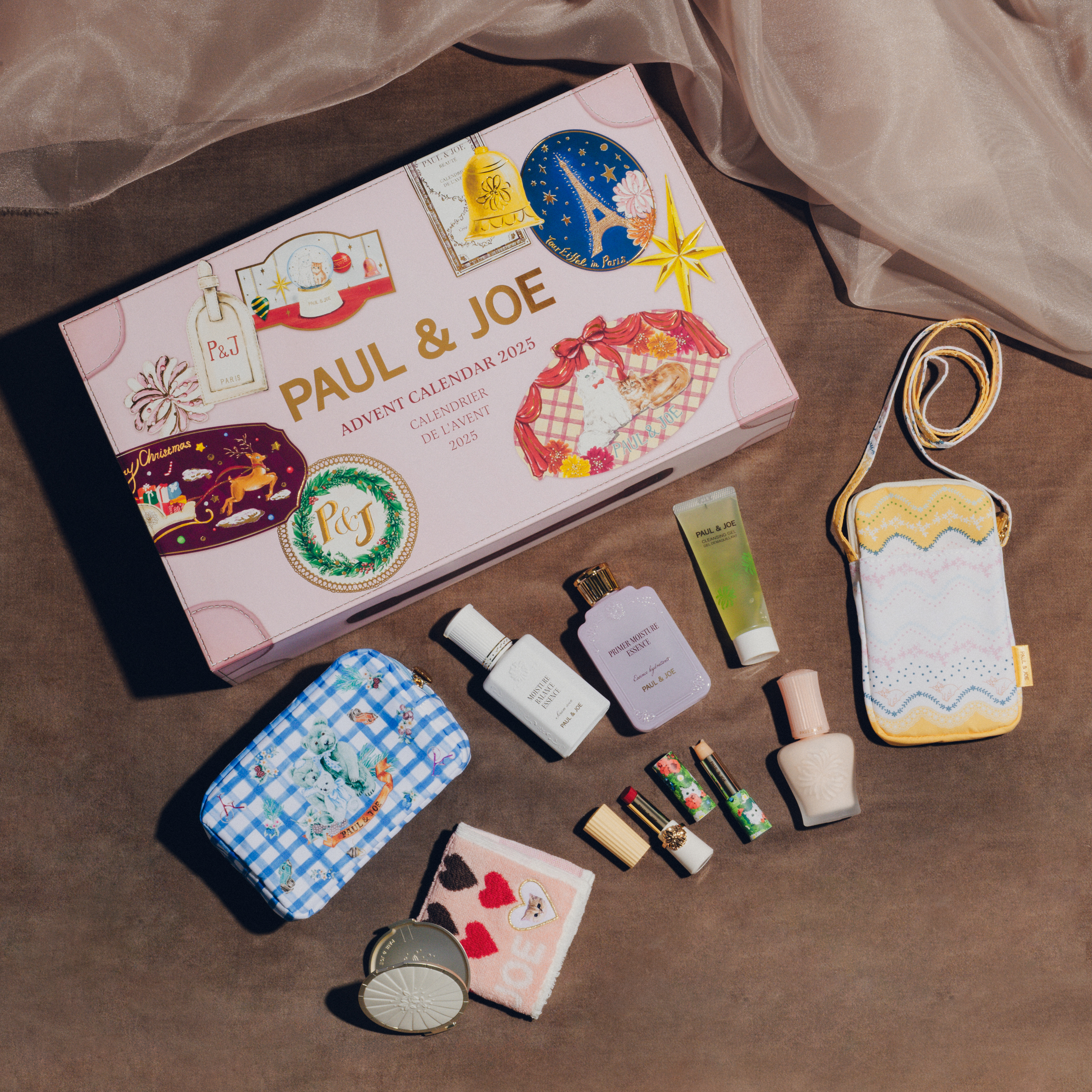 ホリデー恒例の豪華なアドベントカレンダー、今年のテーマは、夜のパリを彷徨う「Midnight Voyage(真夜中の航海)」。新スキンケアの現品から人気のプライマーが3種類、猫ちゃんパッケージのリップにミニバッグなど、“おトク”としか言いようのないスペシャルなラインアップ。美しいイラストが描かれたボックスも、取っておきたくなるほど魅力的です。