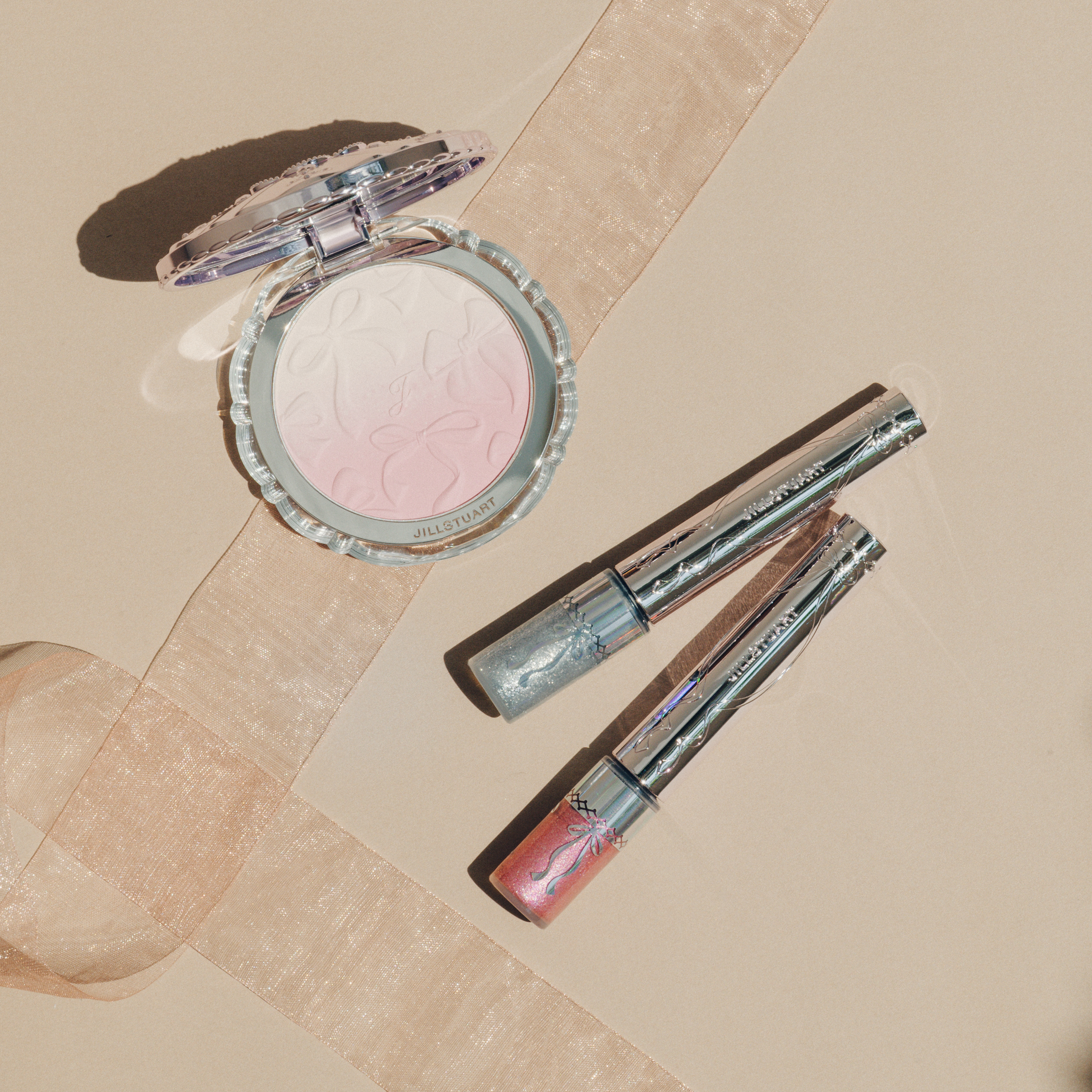 可憐なチュールリボンをモチーフに展開するジルスチュアートのホリデーコレクション。圧倒的なツヤ肌に仕上がると人気の美容液化粧下地にも、アメジストピンクに輝く限定カラーがお目見えします。透明感のあるグロウ シフォンの質感に、大粒のパープルパール、小粒のシルバー、ゴールド、ピンクパールをIN。保湿感とツヤを兼ね備えたオイルと輝きを与えるオーロラジェムパウダーで、とっておきのよそゆき肌に。