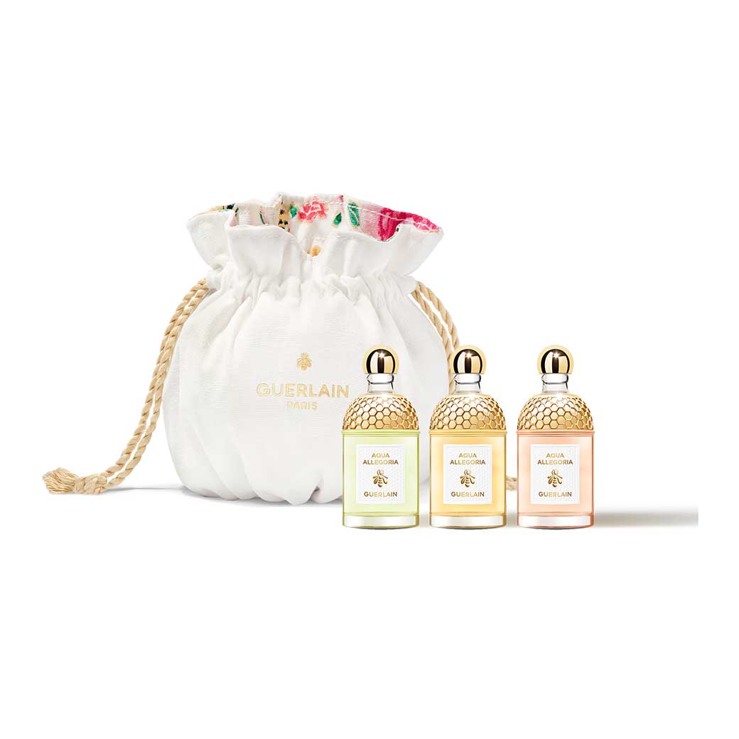 フレグランス商品を税込20,350円以上お買いあげいただいた方に「アクアアレゴリア デラックス コフレ(ミニサイズ3種・ポーチ付き)」をプレゼント。