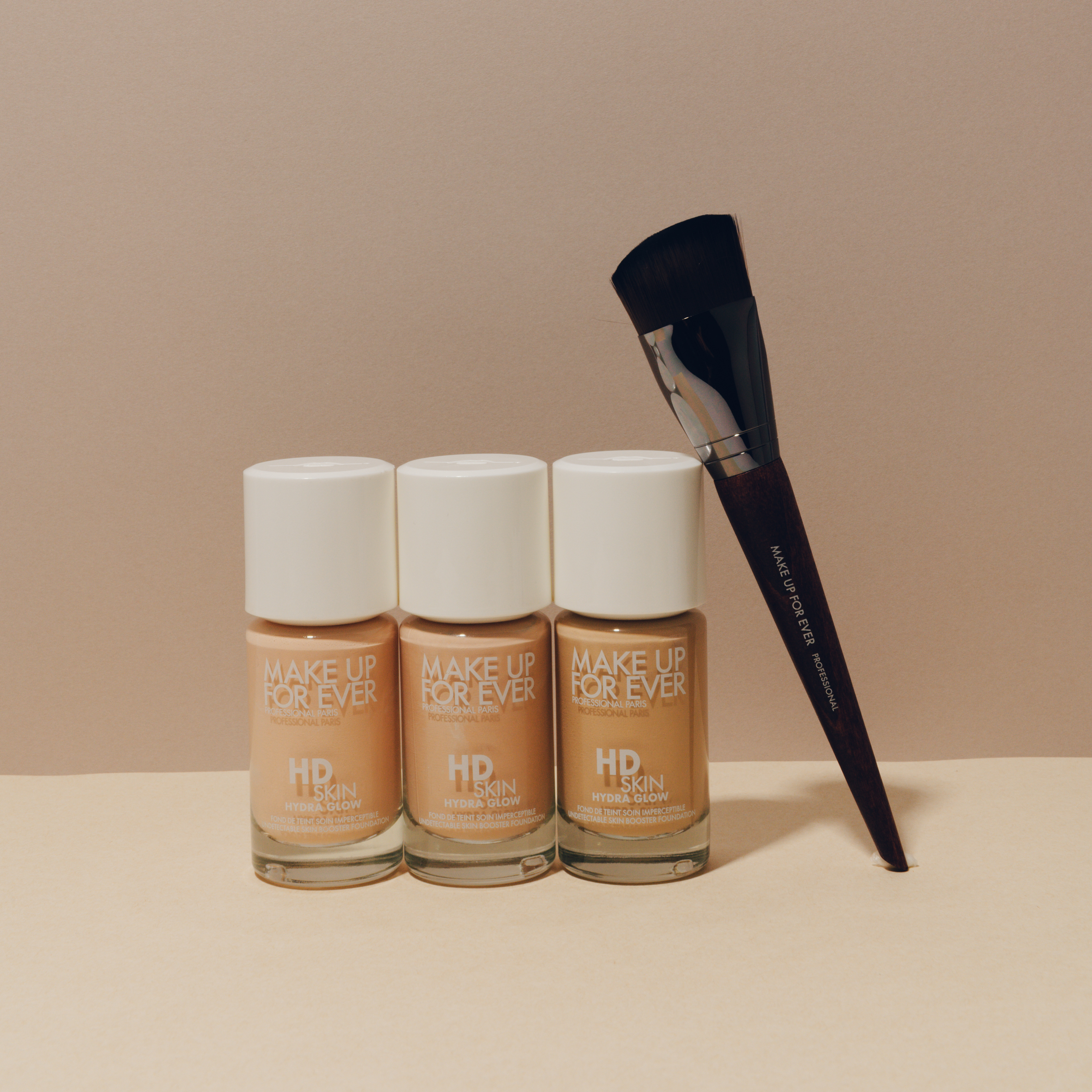 メイクアップアーティストとの共同開発で生まれた“塗る素肌”のようなリキッドファンデーションと、広い面も細かい部分もムラなく塗布できるしずく型ブラシ。ファンデーションはヒアルロン酸※を配合した独自製法のハイドラスキンブースターなどが、付けている間中、心地良く潤うツヤ肌へ。ほんの少量でナチュラルにのび広がり、ブラシで磨くようになじませるだけでキレイな仕上がりに。