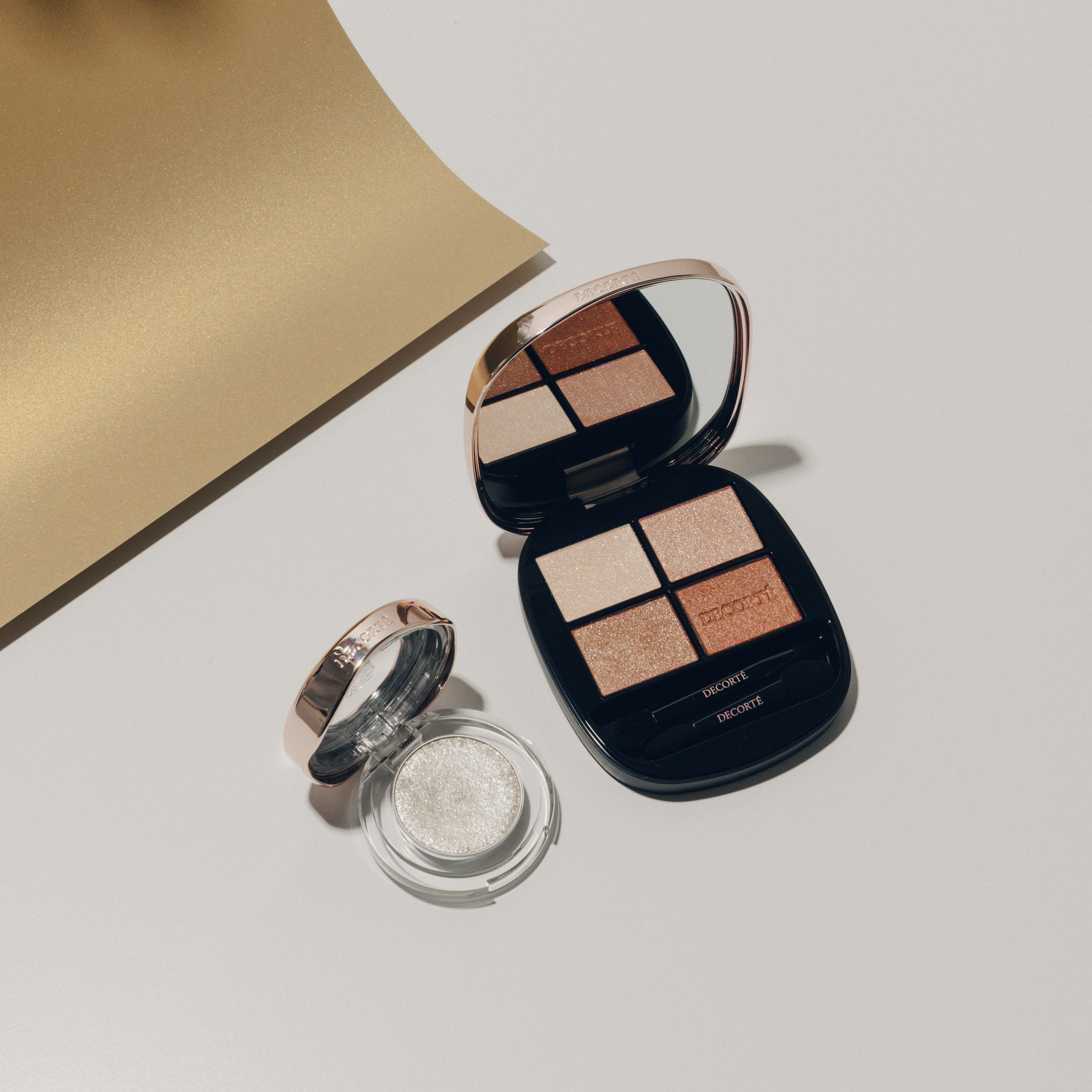 色味ではなく透明感が重なり合うことで、一人ひとりが持つ骨格や肌の魅力を際立たせる4色のスキンカラーアイシャドウ。このトレンドに左右されることのない、普遍的な美を追求するパレットをベースに、ジュエリーのように輝くクリスタルシルバーをプラスすれば、限りなく上質かつ華やかなヌーディメイクのできあがり。冬の夜の特別なお出かけにぜひ。