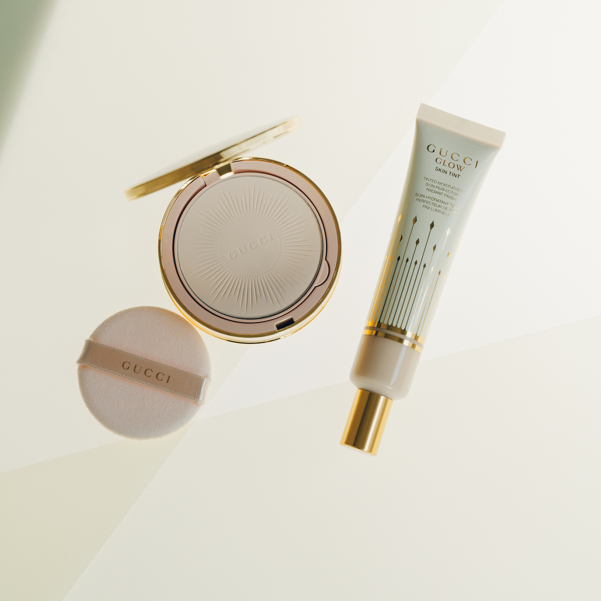 ナチュラルな洗練肌を目指すなら、こちらのペアはいかが?グッチ マット パウダーで程良くテカリを抑えてくすみ・毛穴もよりふんわりとカバー。グッチ グロウ スキン ティントは潤いティントとファンデーションが一つになったアイテム。ベースに仕込めば軽やかなタッチで内側から輝くようなツヤ※1をプラスして、自然な美肌に整えてくれます。どちらも保湿成分配合※2でしっとり感も続きます。