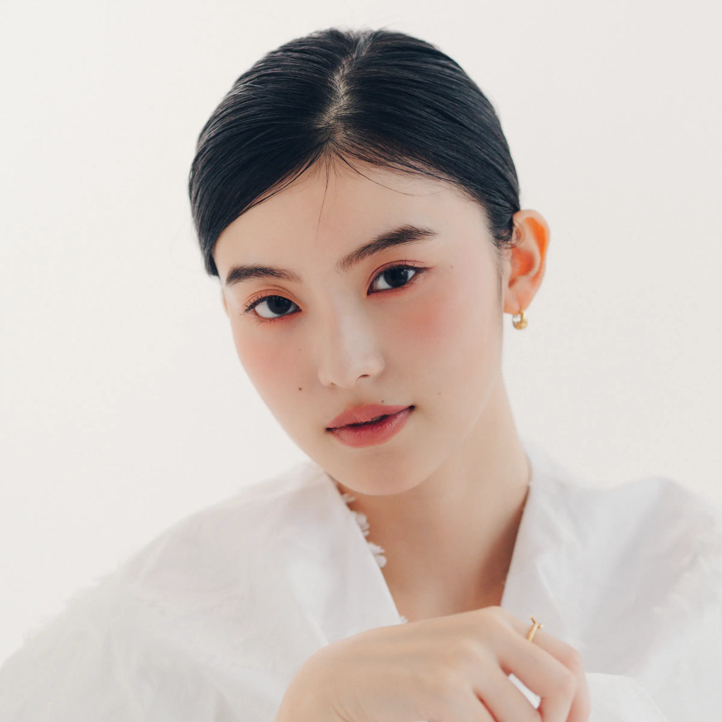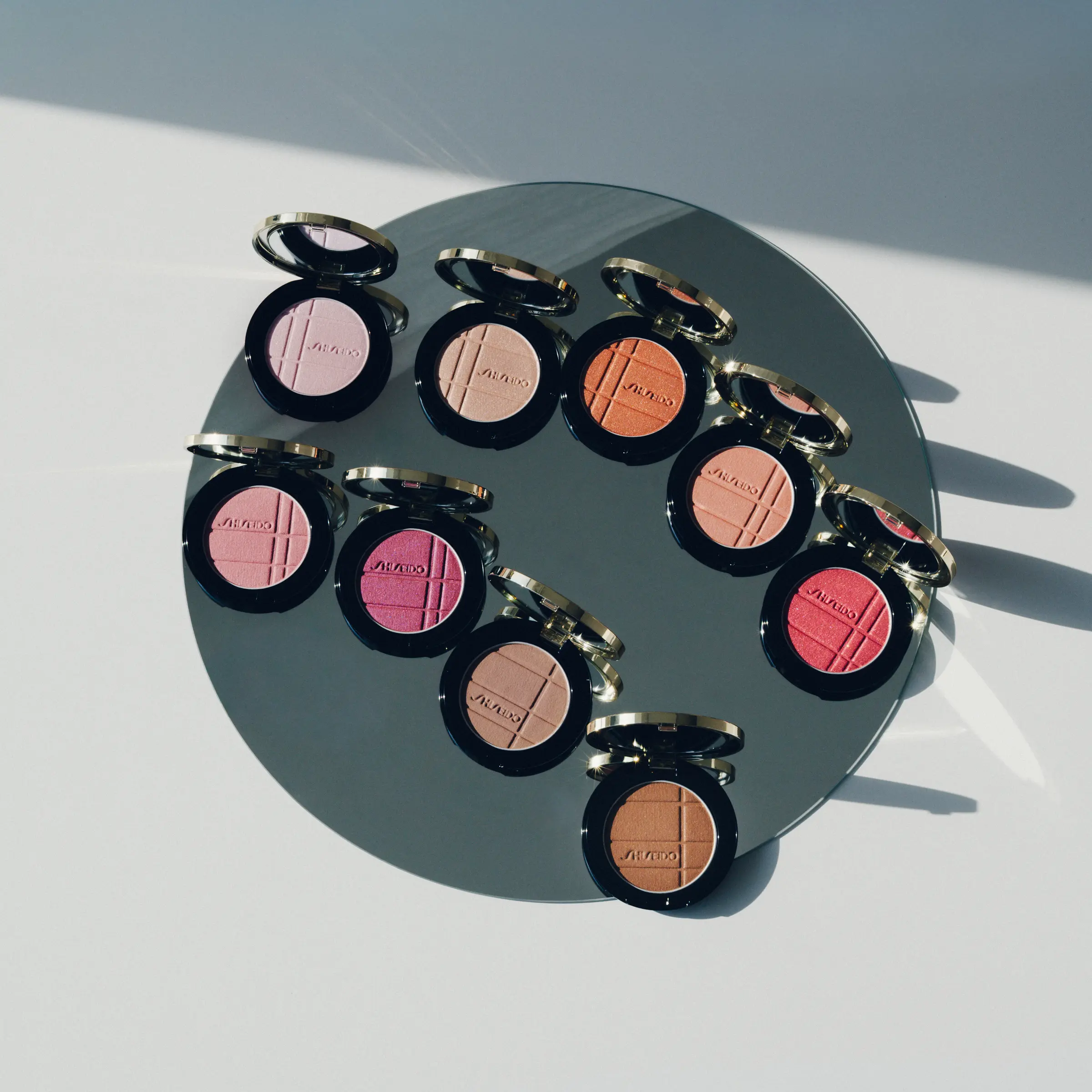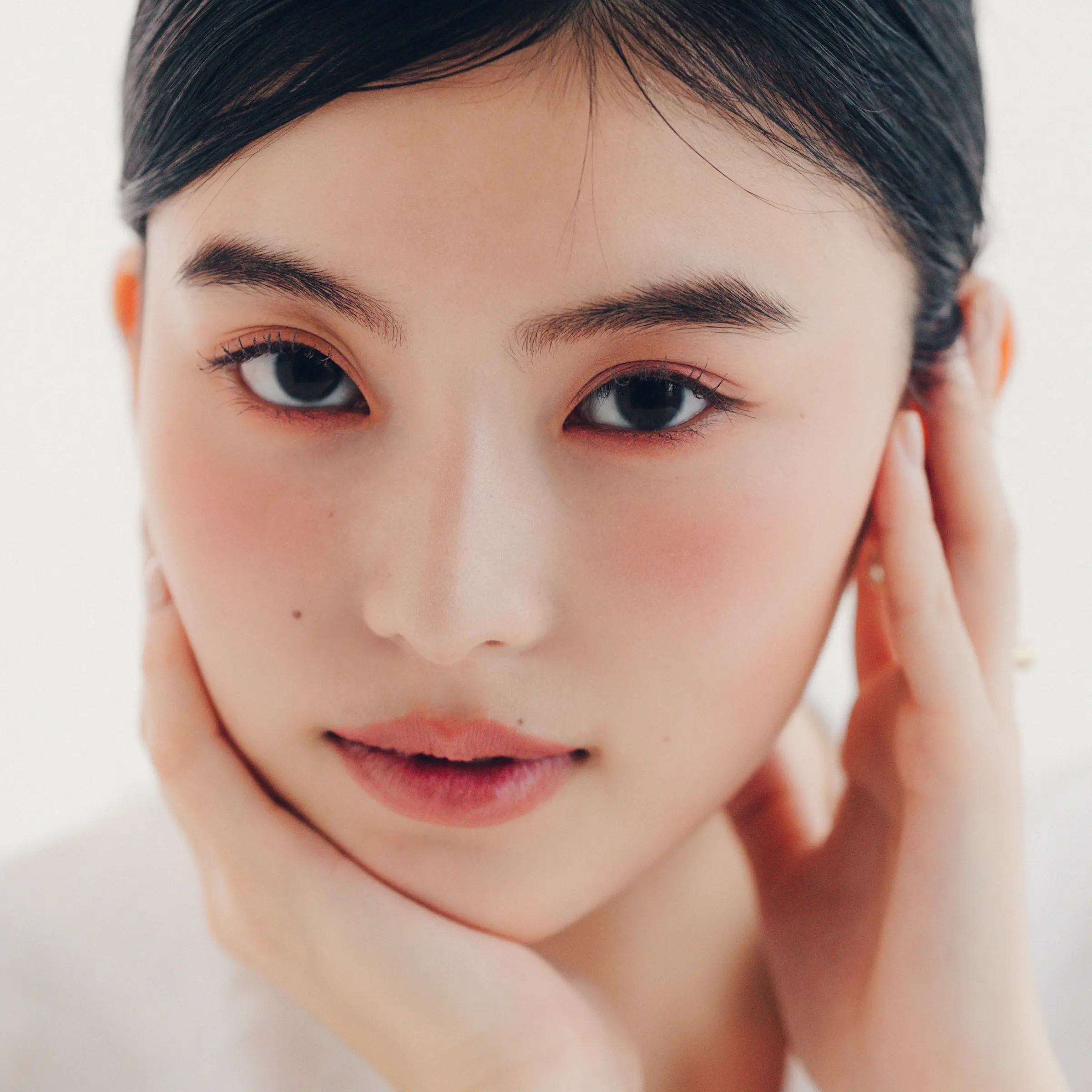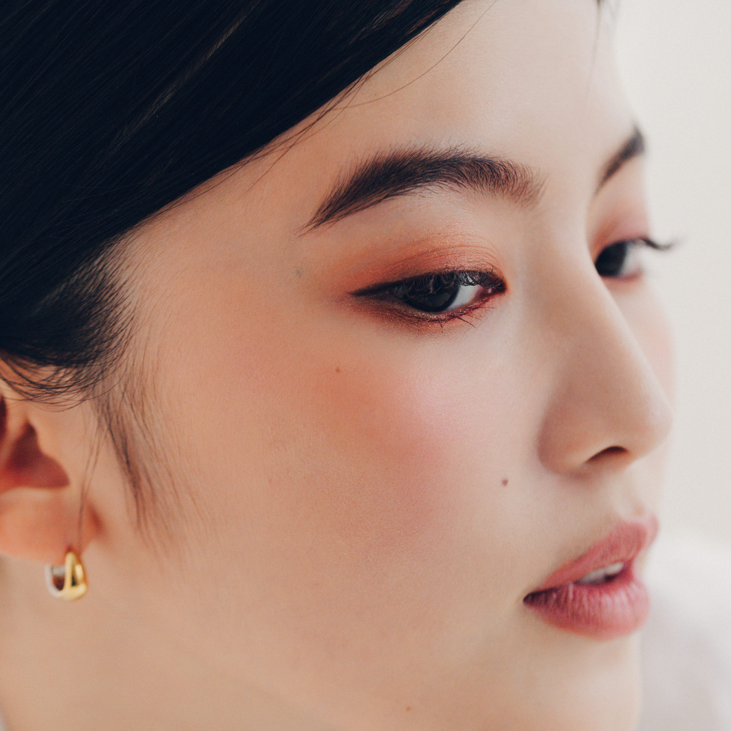 SHISEIDO カラー+グロウ エンハンサー 07を大きめのチークブラシに取り、頬の中央から斜め上にふんわりのせる。05を小さめのチークブラシに取り、目の下あたりにポンポンと重ねる。