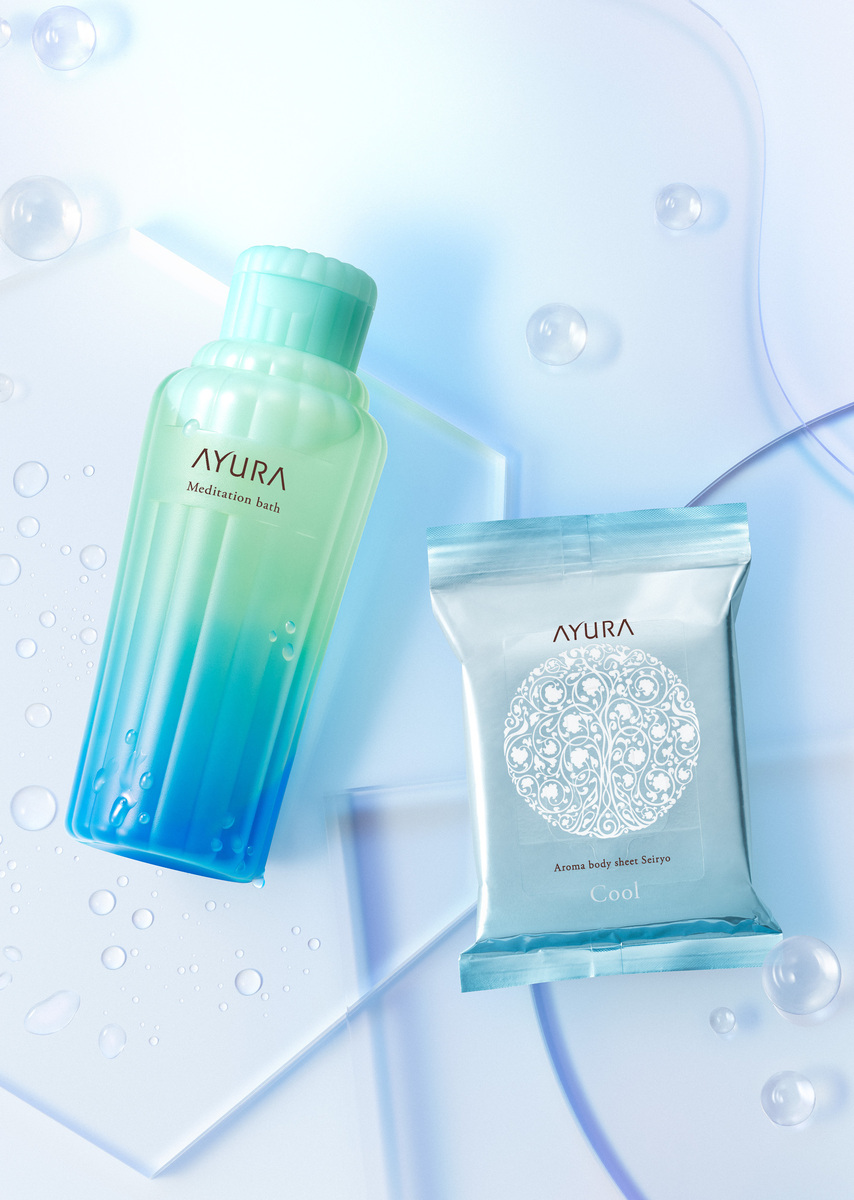 冷感を加えた夏限定「青いAYURA」シリーズと大人の髪のための新ヘアケアが登場。ひんやり感がアップした入浴料やボディシート、新ヘアケアシリーズをご紹介いたします。